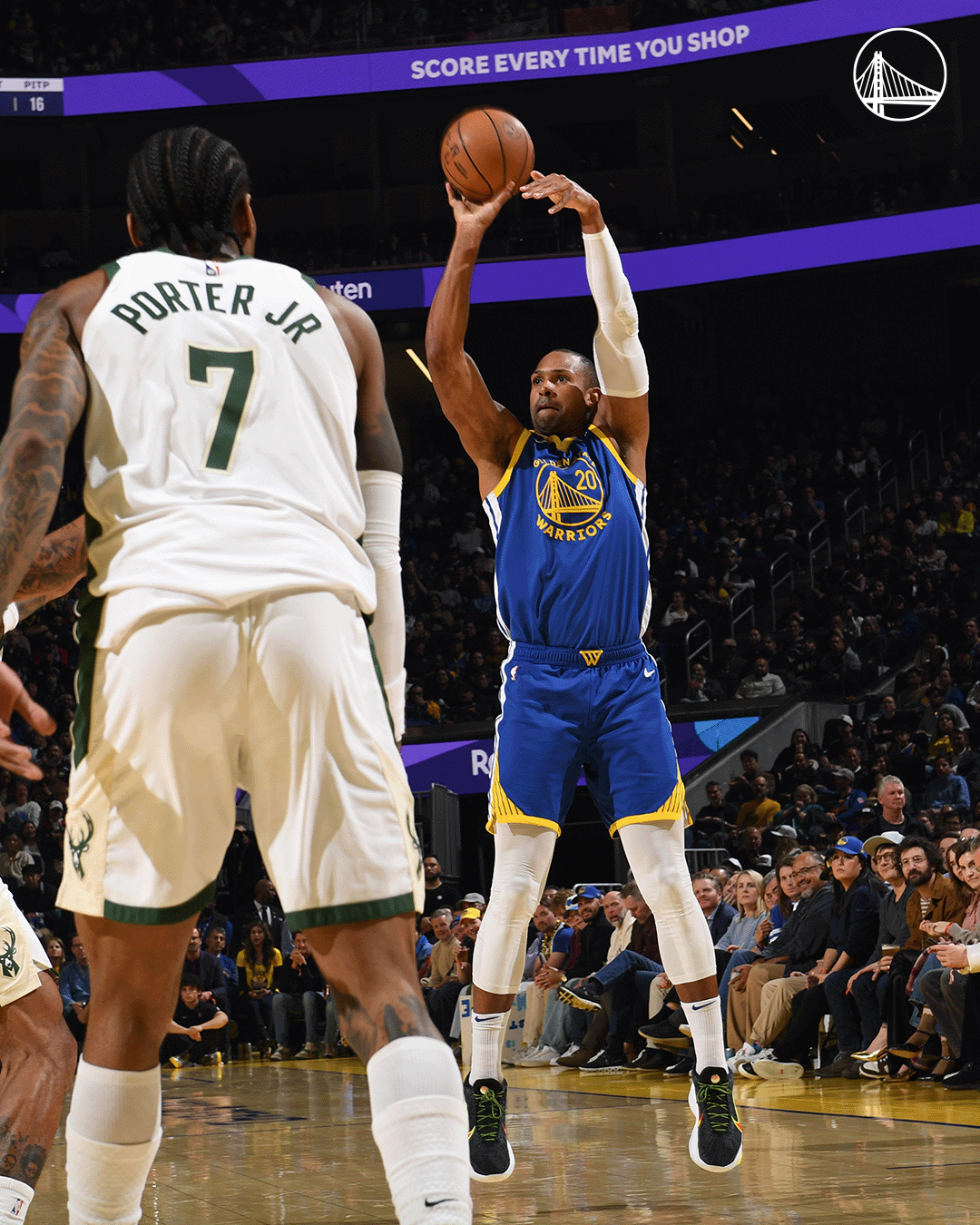 勇士队的库里上半场得到14分和4次助攻,梅尔顿得到11分,穆迪和普斯特各得到9分;雄鹿队的字母哥得到18分和4个篮板,波特得到11分。