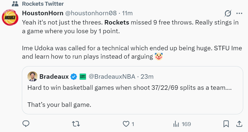 火箭球迷:看了比赛的人才知道这场比赛有多么令人难受。那些说少了申京会更好的人根本不懂球,申京绝对是这支球队的MVP球员。