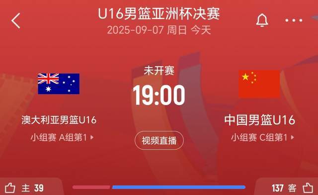 北京时间9月7日晚19点,U16中国队vsU16澳大利亚队决赛一触即发,让我们一起关注,为中国队加油!